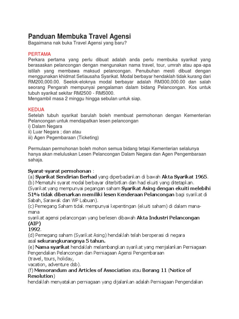Panduan Membuka Travel Agensi Pdf