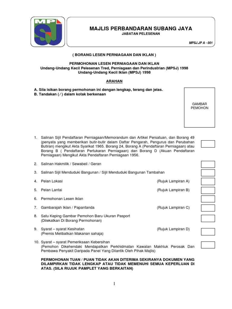 Borang Lesen Perniagaan Dan Iklan Pdf
