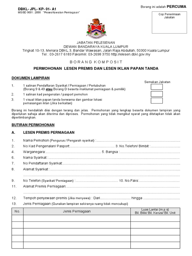 Borang Permohonan Lesen Premis Iklan Pdf
