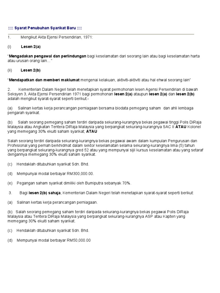 Syarat Penubuhan Syarikat Baru Pdf
