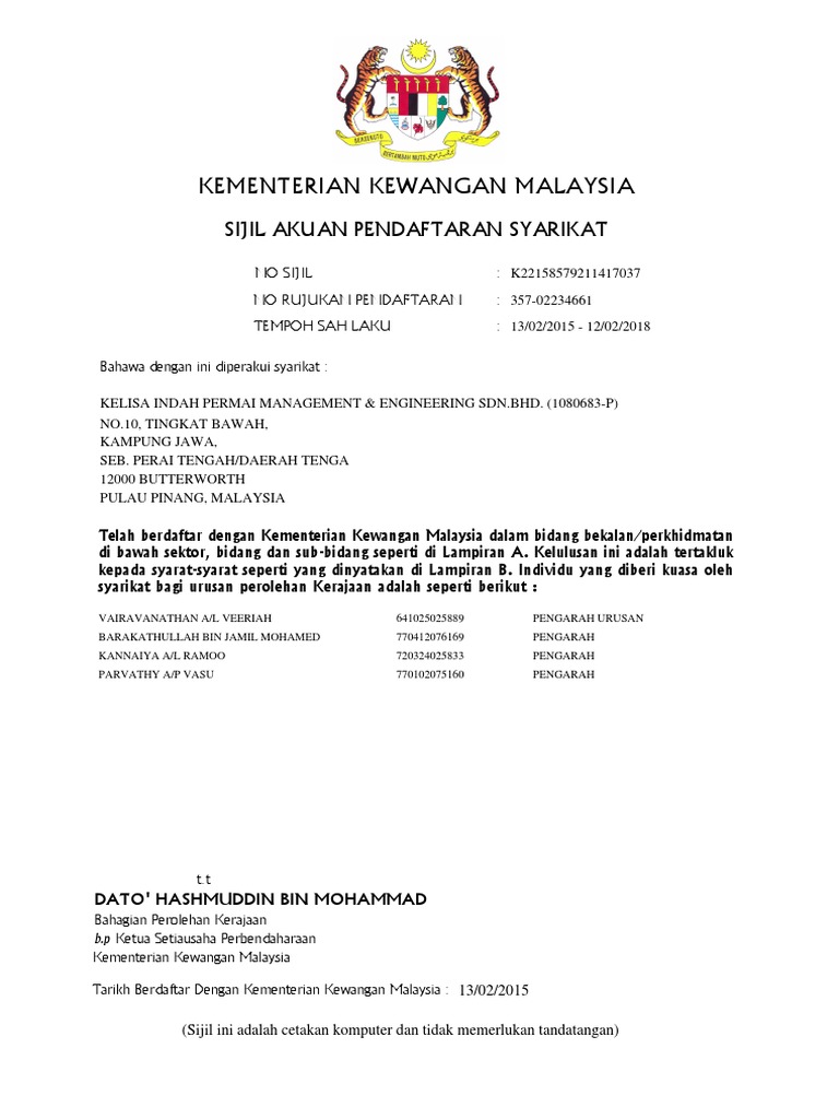 Lagi Syarikat Dapat Daftar Kementerian Kewangan Mof Facebook