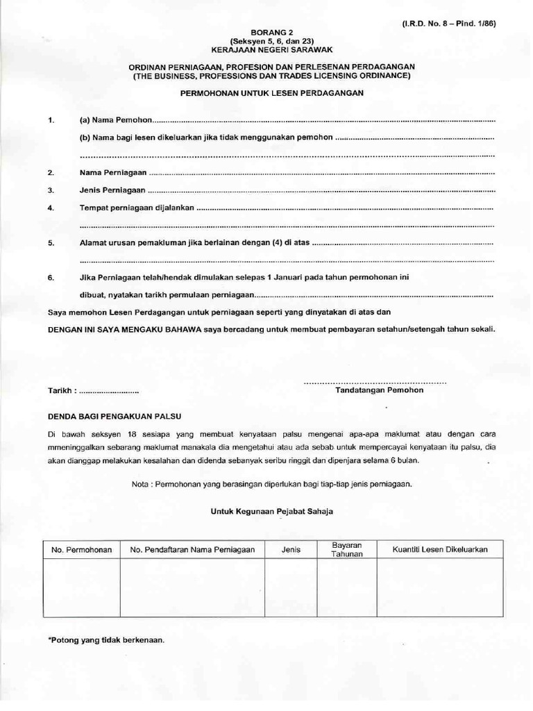 Borang Permohonan Lesen Perdagangan Di Negeri Sarawak Pdf